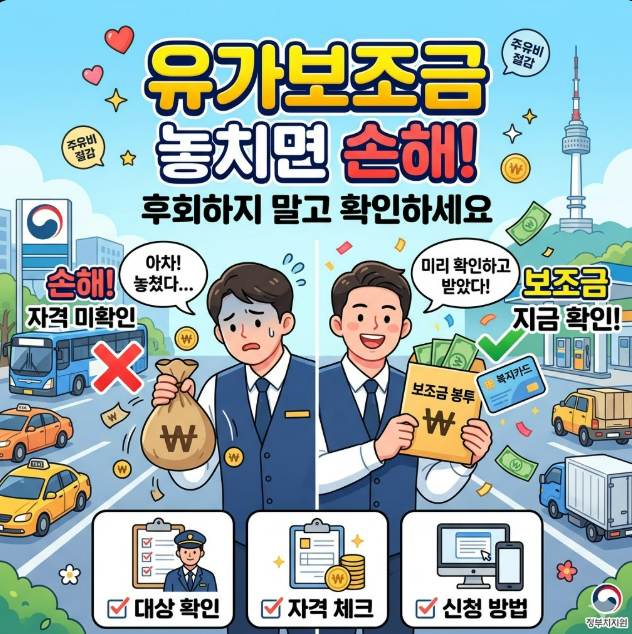 따라서 유가보조금 놓치면 손해 보는 이유를 검색하고 있다면, 지금 바로 본인 조건과 신청 기간을 확인하는 것이 가장 현실적인 절약 방법입니다.