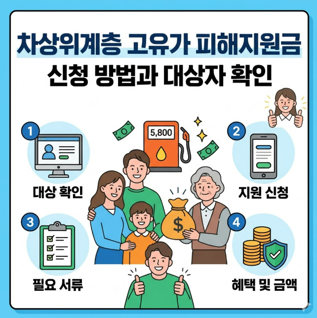 기름값과 생활물가가 함께 오르면서 교통비, 난방비, 장보기 비용까지 부담이 커졌습니다. 특히 소득 여력이 크지 않은 가구라면 매달 고정비가 조금만 늘어도 생활 전체가 흔들릴 수 있습니다. 이런 상황에서 많은 분들이 검색하는 내용이 바로 차상위계층 고유가 피해지원금 신청입니다.